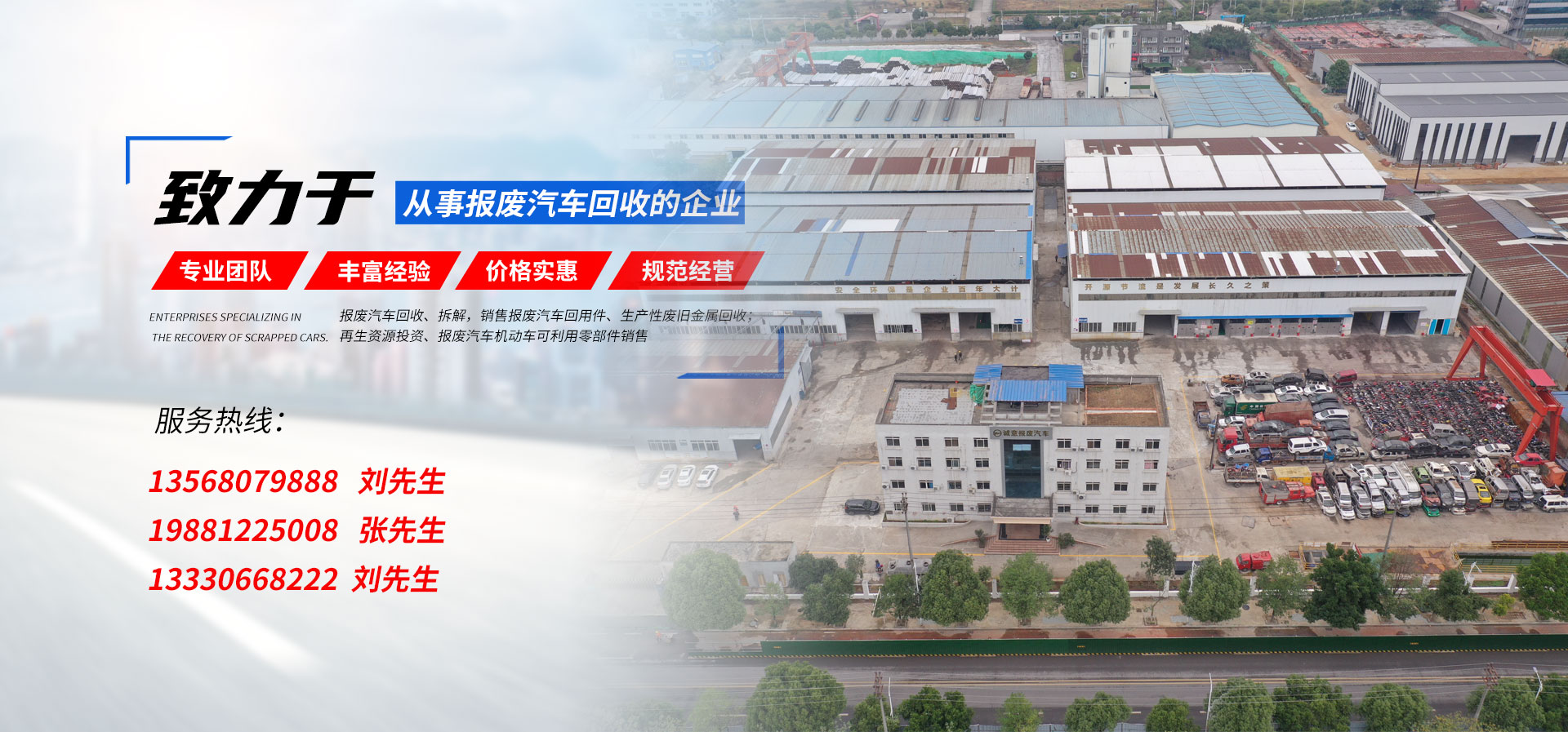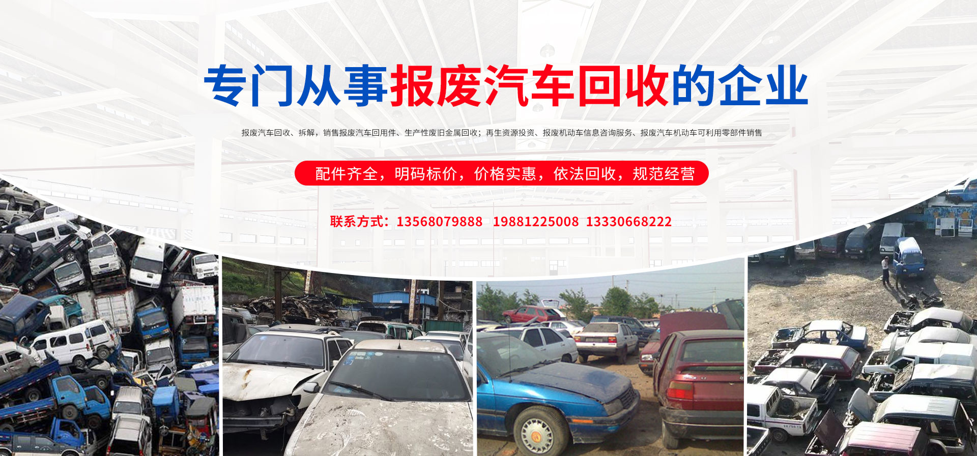 我公司在報(bào)廢汽車回收拆解中,認(rèn)真貫徹執(zhí)行國家法律法規(guī),嚴(yán)格執(zhí)行國務(wù)院令第307號,積極開展行業(yè)自律,依法回收,規(guī)范經(jīng)營,從源頭上控制了報(bào)廢汽車整車、拼裝車、“五大總成”等上路和重新流入市場的現(xiàn)象,為緩解我市資源短缺,減輕環(huán)境污染,促進(jìn)資源循環(huán),維護(hù)人民群眾生命財(cái)產(chǎn)安全和道路交通安全起到了巨大的作用。